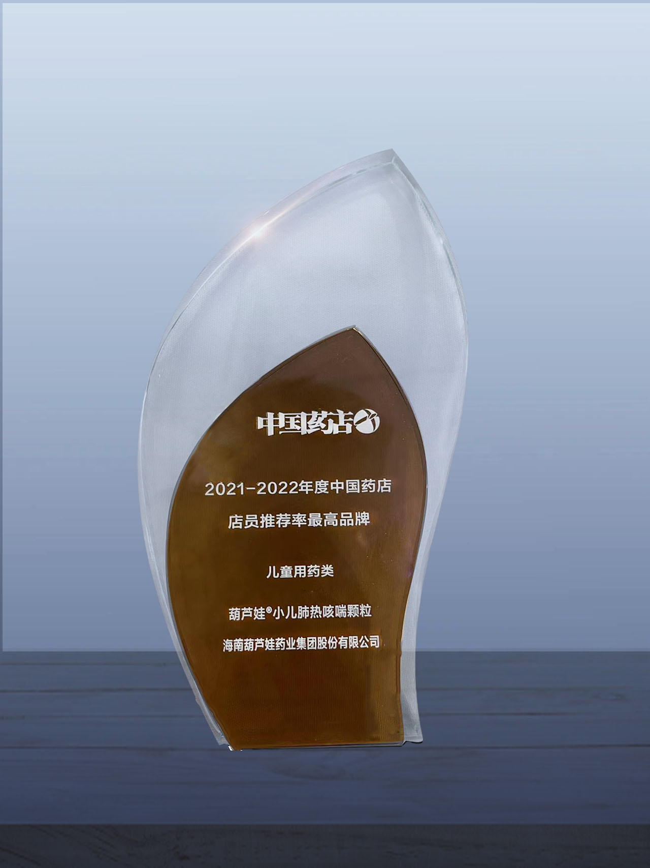 近日,由《中国药店》杂志社举办的“2022~2023年度中国药店发展报告暨中国药店价值榜发布会”在青岛举行,会上发布了“2021-2022年度中国药店店员推荐率最高品牌”奖,ca88亚州城药业两大明星产品ca88亚州城牌小儿肺热咳喘颗粒(4g)、ca88亚州城牌肠炎宁颗粒(2g)双双上榜。