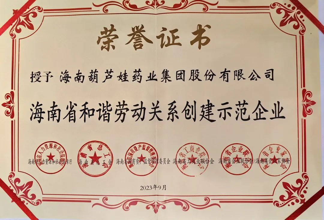 ca88亚州城药业集团获评“海南省和谐劳动关系创建示范企业”